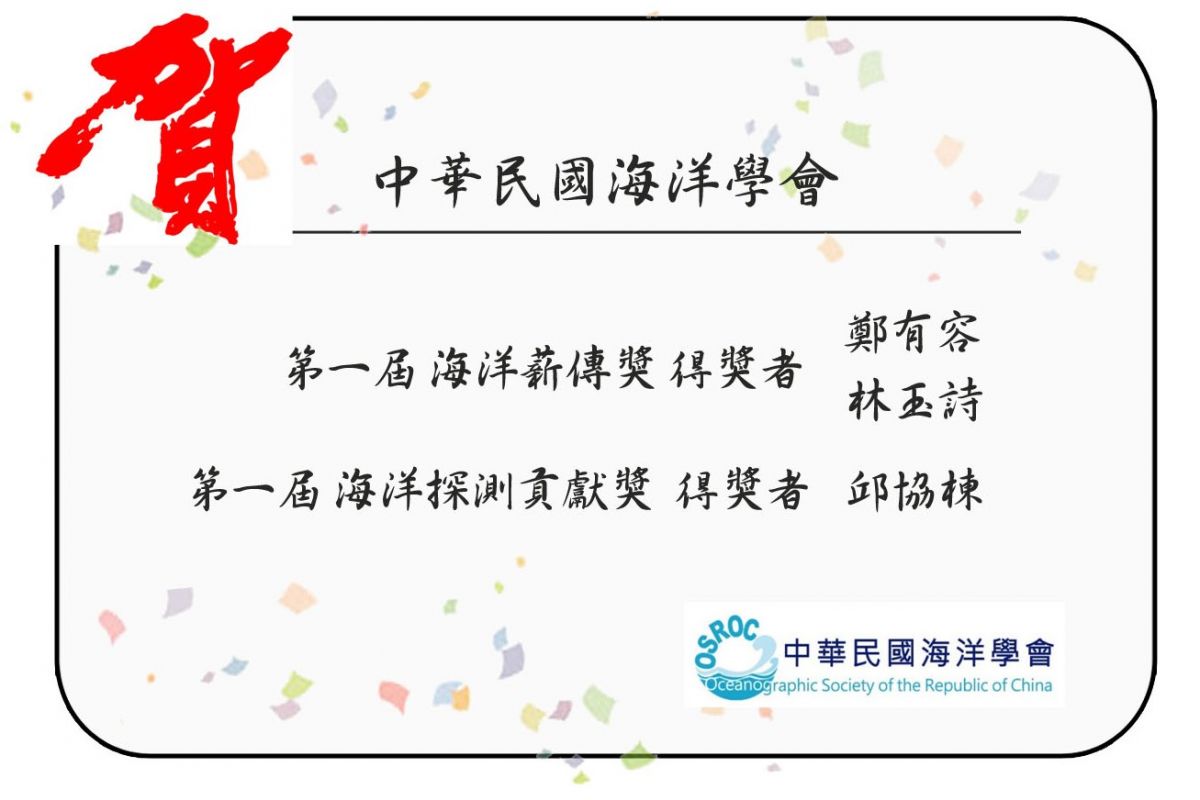 海洋薪傳獎:鄭有容、林玉詩 海洋探測貢獻獎:邱協棟