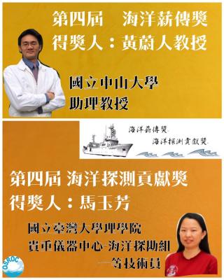 海洋薪傳獎:黃蔚人教授 海洋探測貢獻獎:馬玉芳技術員