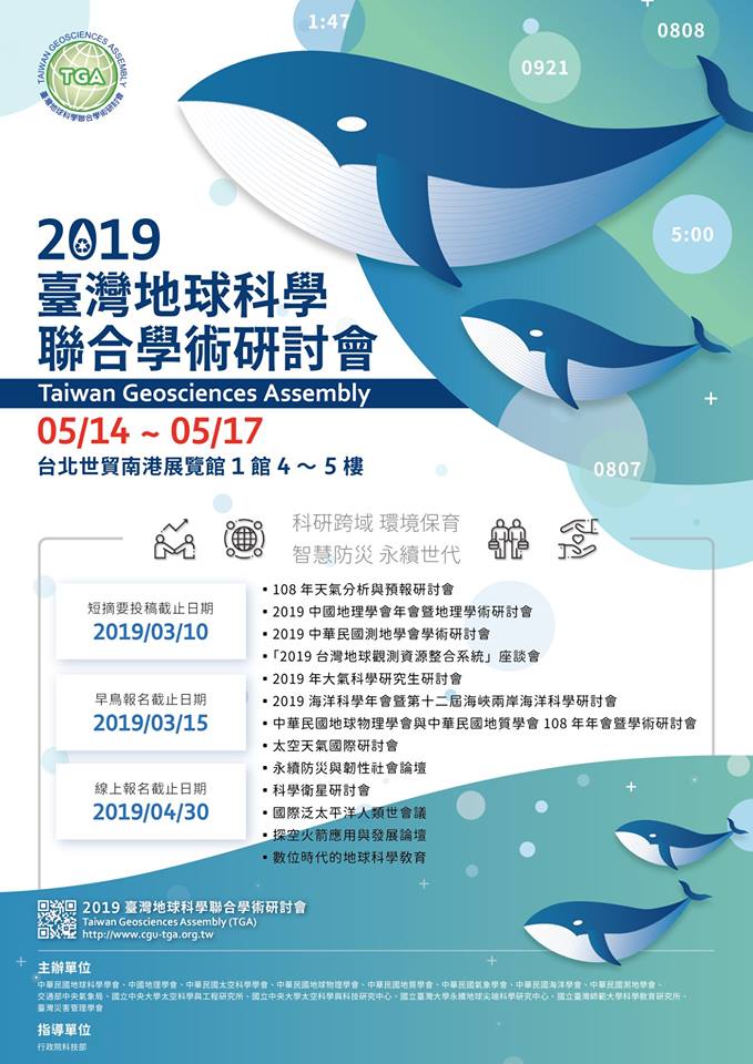 > 【TGA報名提醒】「2019臺灣地球科學聯合學術研討會(TGA)」及將關閉短摘要上傳系統