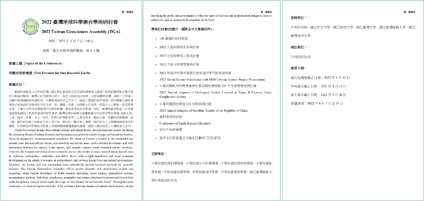 2022年海洋科學年會將於6月7日至9日與臺灣地球科學聯合學術研討會(TGA)於